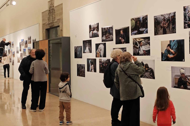 A la sala, entre les més de cinquanta obres exposades, hi ha també una petita mostra de fotografies de vuit autors palestins, que té continuïtat a l’exposició paral·lela muntada per Agnès Juste, del Grup de Solidaritat amb Palestina d’Osona, al Centre Cívic Joan Triadú, i inaugurada el dia anterior. Són més de noranta fotografies de gran format que mostren tant el patiment com la fortalesa i resiliència del poble palestí durant els darrers dos anys de genocidi. Són terribles i dures però, alhora, d’una gran qualitat artística: capturen la llum i la foscor, la violència i la tendresa d’una realitat insuportable.