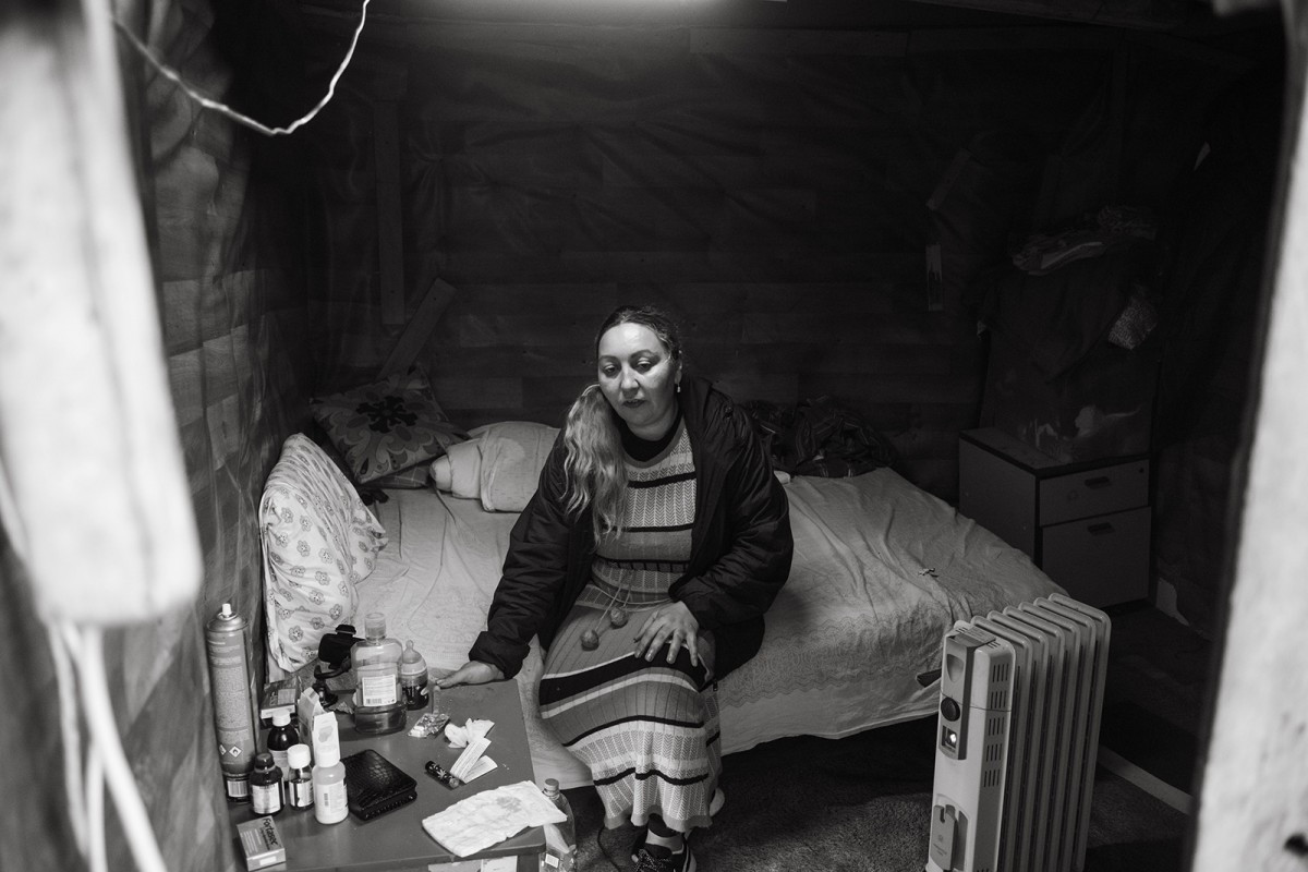 Una veïna dels assentaments de Vallcarca, a l'interior d'un dels habitatges. Foto: Marta Ruiz Jadraque