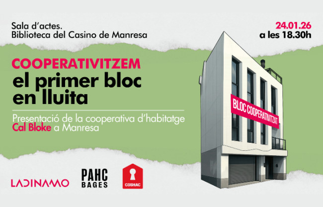 Durant l'acte de presentació, s’explicarà el procés viscut per Cal Bloke, amb la participació de les entitats i col·lectius que han acompanyat i donat suport al projecte, com ara la COSHAC, PAHC Bages, l'Agència de l’Habitatge de Catalunya, l'Institut Català de Finances, l'Ajuntament de Manresa, Coop57, la cooperativa d'habitatge manresana La Raval i l'Ateneu Cooperatiu de la Catalunya Central. L’acte vol esdevenir un espai de reflexió i intercanvi sobre el futur de l’habitatge cooperatiu i les estratègies col·lectives per garantir el dret a l’habitatge.