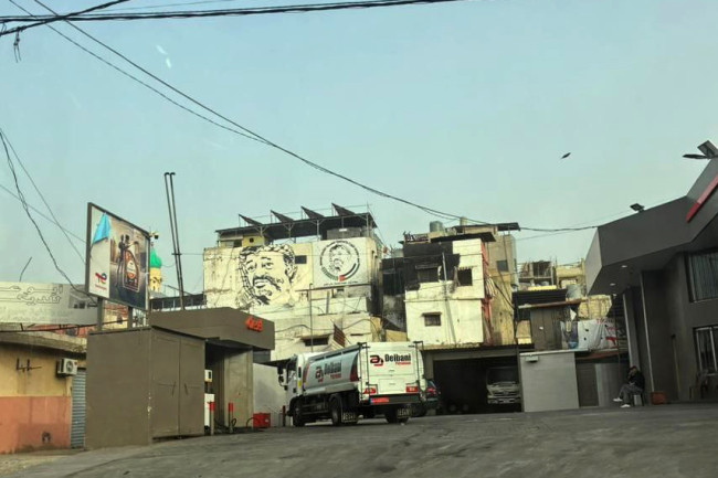 Entrada del camp de refugiats palestins Burj al Barajnea, amb un dels edificis cremat degut als atacs israelians Foto: Núria Roma