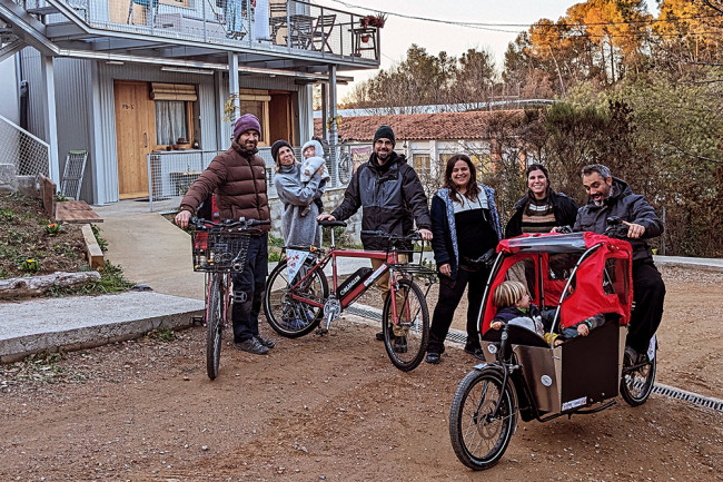 Habitants de l'habitatge cooperatiu de Clau Mestra, a Sant Cugat, amb les bicicletes